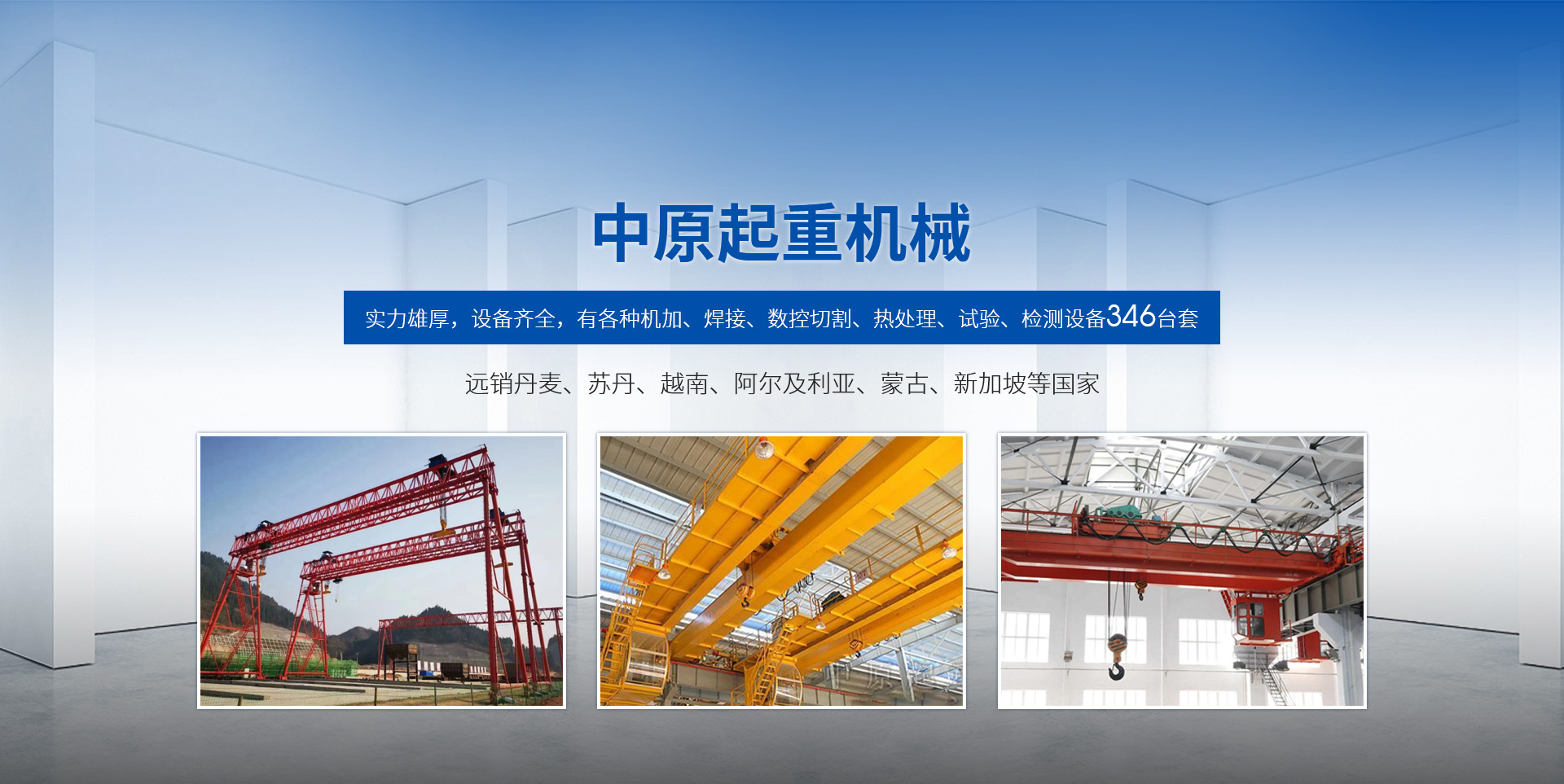 新鄉(xiāng)市中原起重機械有限公司成立于2000年,地處中原,輻射全國28個省市自治區(qū),設(shè)外埠經(jīng)銷處、辦事處268個。產(chǎn)品行銷工礦、建材、化工、冶金、電力、交通、鐵路、油田、港口等各個行業(yè)。遠銷丹麥、蘇丹、越南、阿爾及利亞、蒙古、新加坡等國家?! 」緦嵙π酆瘢O(shè)備齊全,有各種機加、焊接、數(shù)控切割、熱處理、試驗、檢測設(shè)備7臺;有機加工、熱處理、單、雙梁橋門機生產(chǎn)、檢測、安裝等9個車間,研究中心、運輸公司、安裝維修服務(wù)公司等機構(gòu),?  主要產(chǎn)品有:LD型1~20噸電動單梁起重機系列產(chǎn)品;5~600噸通用橋式、門式、冶金、上旋轉(zhuǎn)下旋轉(zhuǎn)電磁吊、絕緣、抓斗、防爆起重機系列產(chǎn)品;LH3~100噸葫蘆雙梁系列產(chǎn)品;MH5~32噸葫蘆門式系列產(chǎn)品;0.5~40噸CD1、MD1鋼絲繩電葫蘆系列產(chǎn)品;HS1型0.5~20噸手動葫蘆系列產(chǎn)品;0.5~10噸環(huán)鏈電動葫蘆系列;0.5~40噸彎道電動葫蘆系列產(chǎn)品;裝卸橋、造船門機、架橋機、鑄造吊和水電大噸位起重機系列產(chǎn)品?! 」窘⒘藦娪辛Φ馁|(zhì)量保證體系和生產(chǎn)過程的質(zhì)量控制系統(tǒng),嚴格執(zhí)行國家設(shè)計、生產(chǎn)標準,有嚴格的生產(chǎn)工藝過程和標準,嚴格的檢驗、檢測標準和手段。